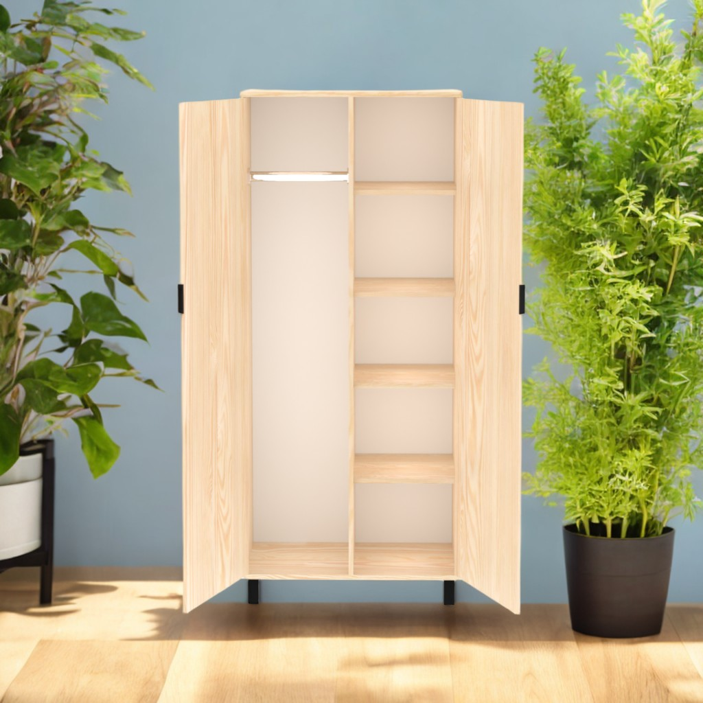 - Szafa stoi na metalowych czarnych nogach o wysokości 10 cm.